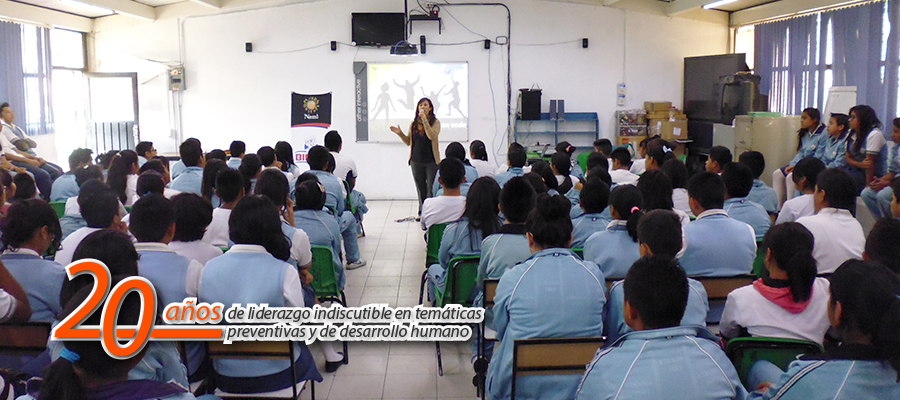 Ciclo educativo, preventivo y formativo a través del cual se imparten de manera gratuita en escuelas públicas y privadas; temáticas de formación humana que refuerzan la integridad de las personas y dan herramientas a la adolescencia para la toma de decisiones en esta importante etapa de desarrollo. Este esfuerzo va orientado a adolescentes de 12 a 18 años de edad. Todos estos contenidos están fundamentados en los valores universales y buscan crear conciencia para generar cambios positivos a nivel personal. |